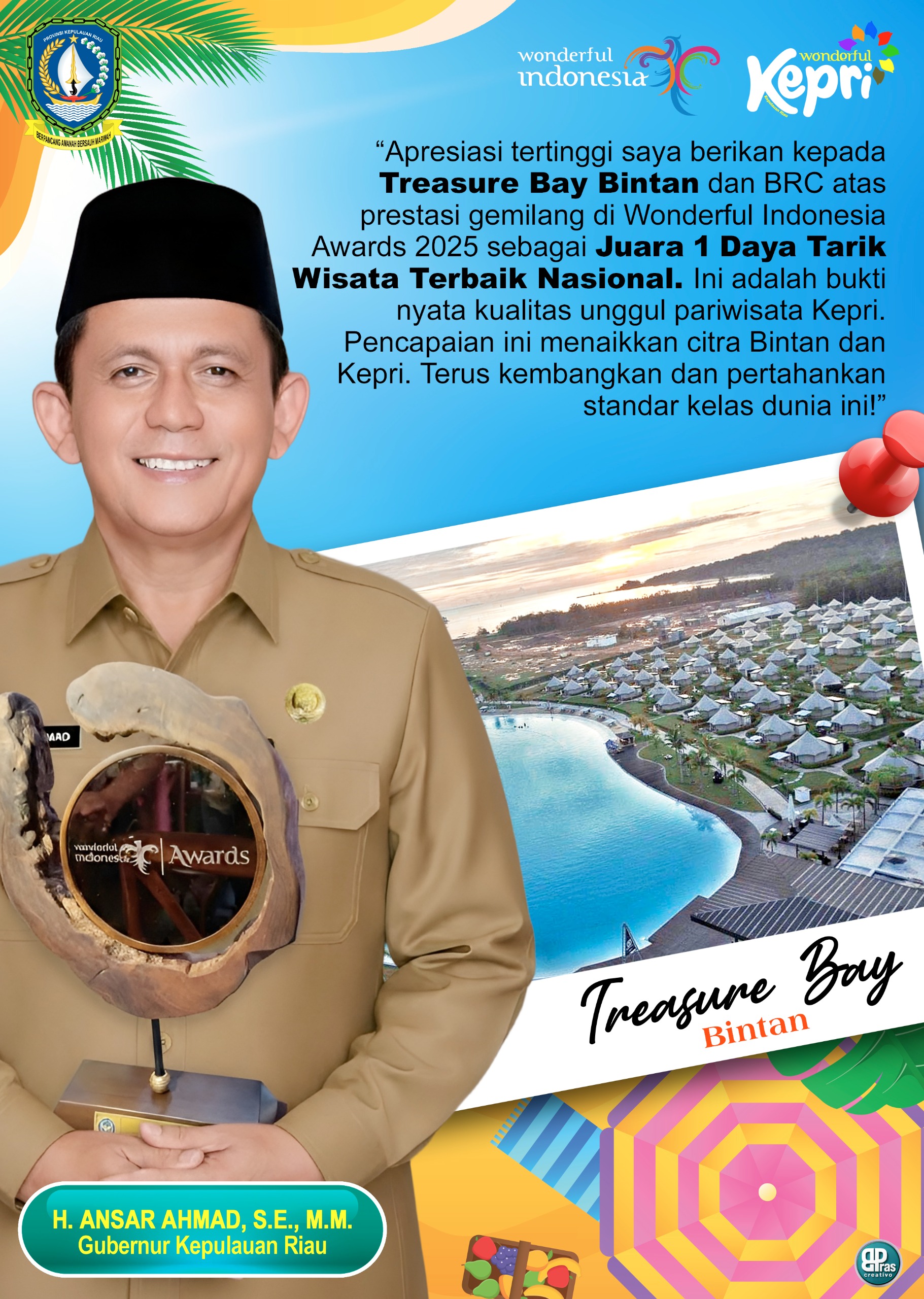 “Saya sangat bangga. Treasure Bay Bintan tidak hanya membawa nama baik Bintan, tetapi juga mengharumkan Kepulauan Riau di tingkat nasional. Ini bukti bahwa Kepri memiliki daya saing yang luar biasa dan mampu tampil sebagai destinasi kelas dunia,” tegas Gubernur Ansar Ahmad.